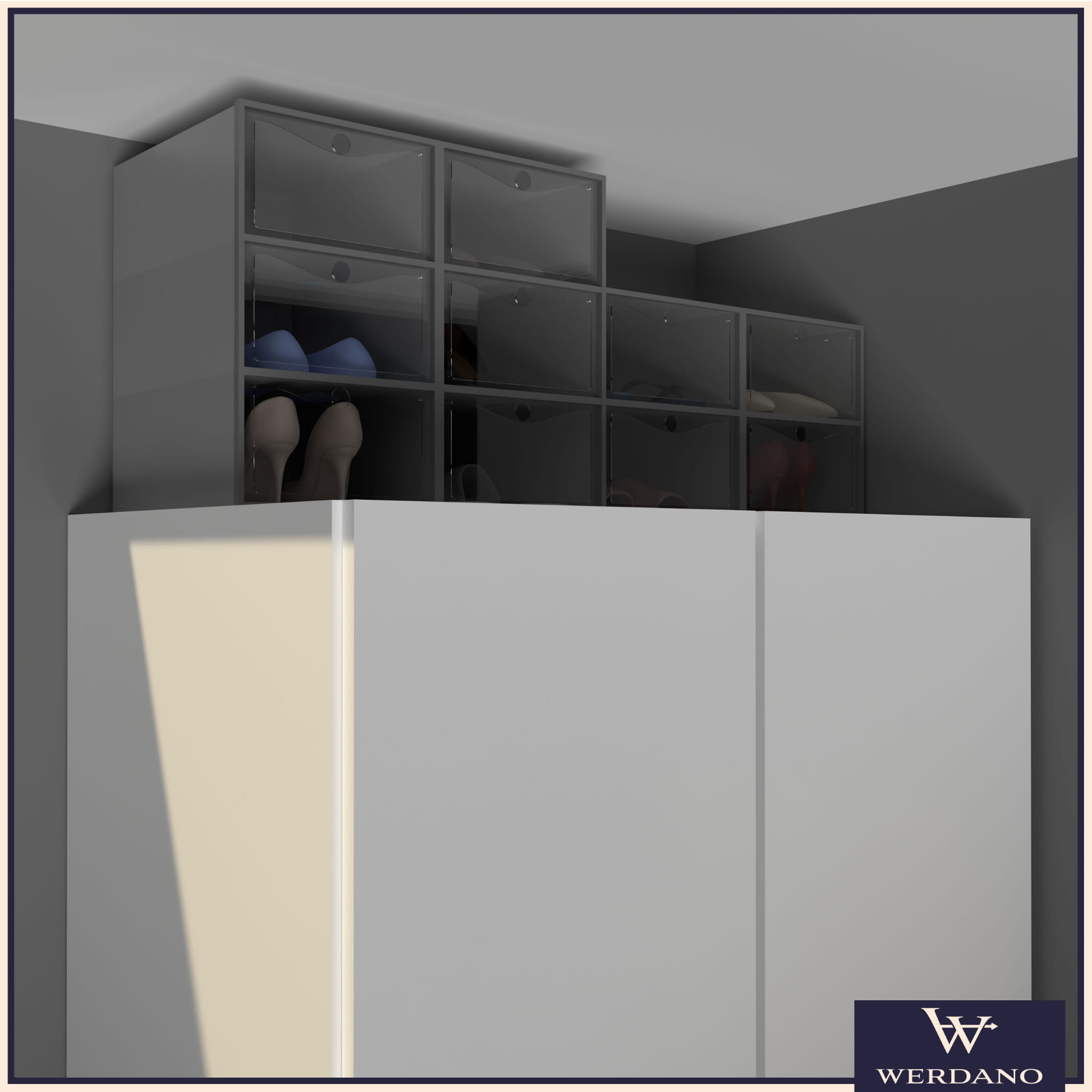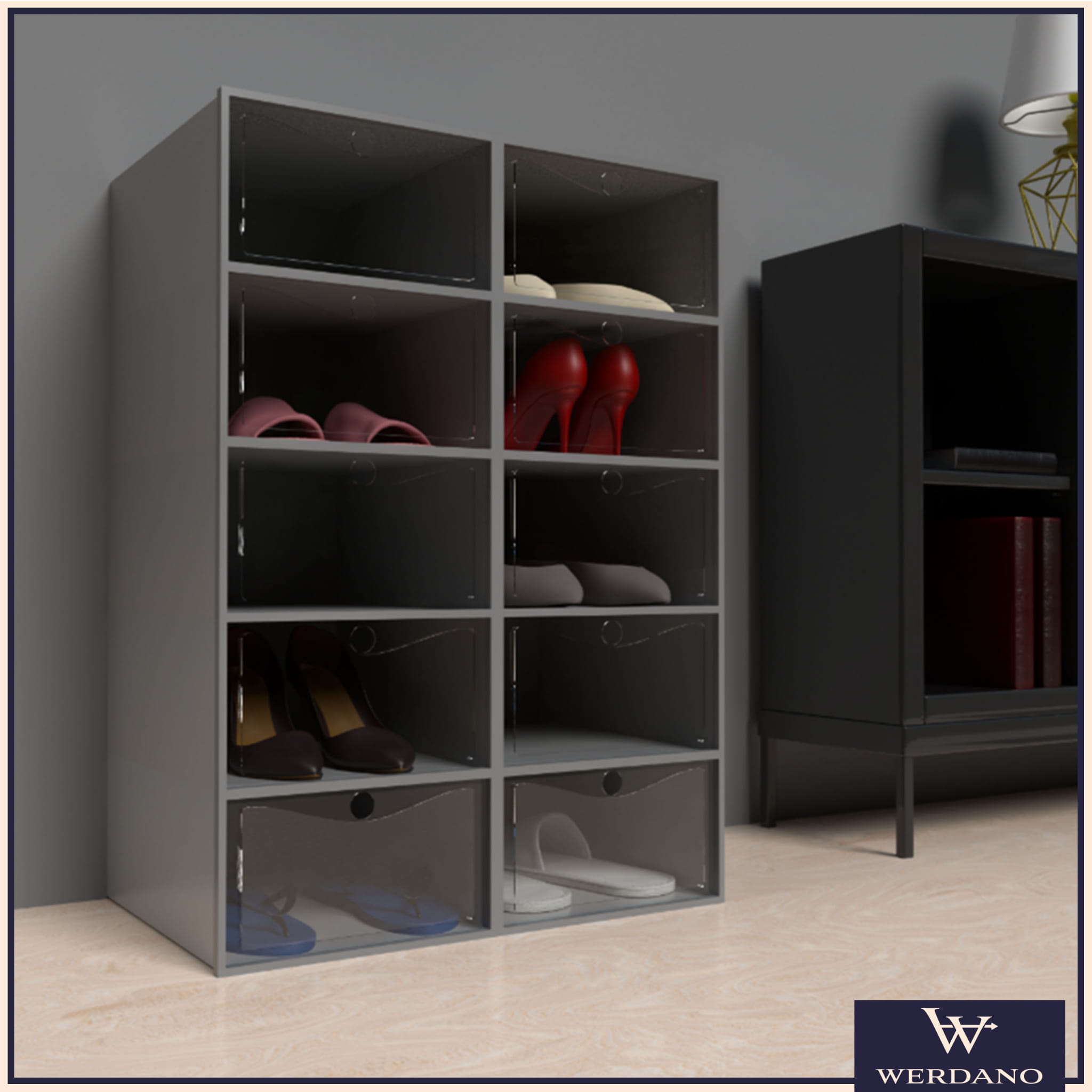 Dzięki transparentnym drzwiczkom już z daleka widzisz, jakie buty znajdują się w środku. Koniec z szukaniem odpowiedniej pary w pośpiechu – teraz wystarczy jeden rzut oka.