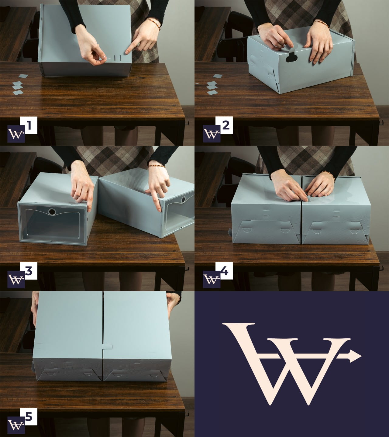 Przezroczysty front sprawia, że każda para jest dobrze widoczna – koniec z szukaniem właściwych butów w porannym pośpiechu. Pojemniki są łatwe w obsłudze, otwierają się wygodnymi drzwiczkami i można je piętrować, tworząc stabilną mini-szafkę na buty. To nowoczesne, praktyczne i eleganckie rozwiązanie, które sprawdzi się w każdym wnętrzu.