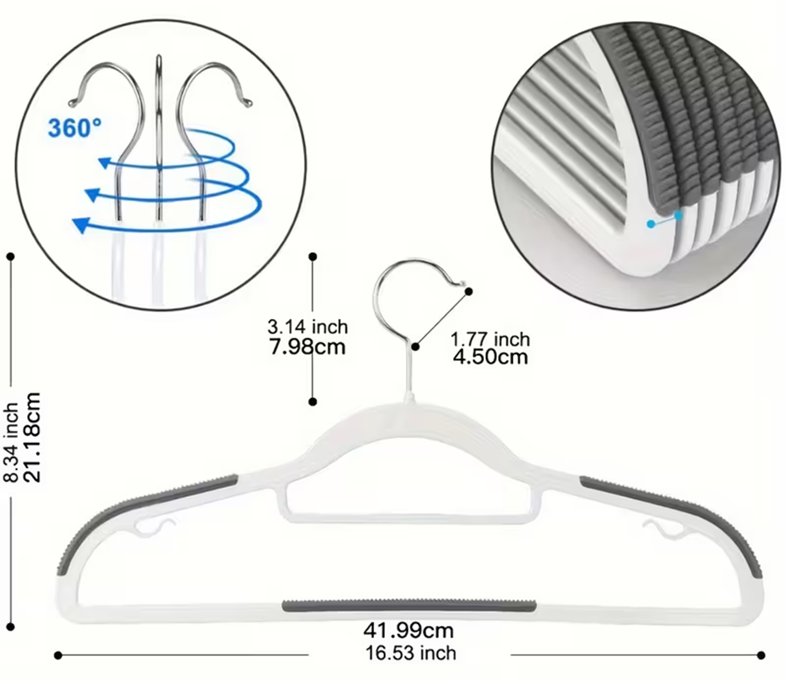 Wieszaki antypoślizgowe to praktyczne i estetyczne rozwiązanie, które pomaga zachować porządek, oszczędzić miejsce w szafie i zadbać o ubrania. To idealny wybór do domu, garderoby czy sklepu odzieżowego.
